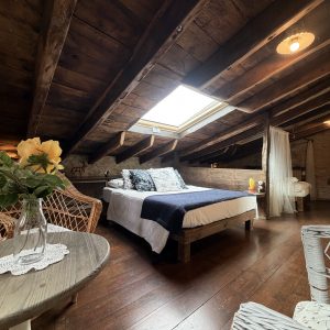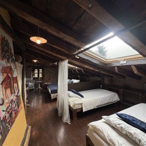 It has got a special smell of the ancient wood in the floor and in the ceiling; an original piece of furniture with the shape of a cage with hen-house yarn gives it a extraordinary charisma. From one of the beds, we can see the stars through the small skylight or contemplate the mountain Montseny just sunbathing in the balcony.